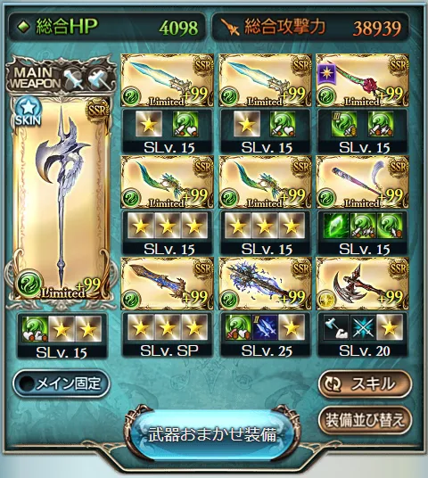 - 季節限定キャラは使っていませんが、リミキャラや武器は惜しみなく使っています。