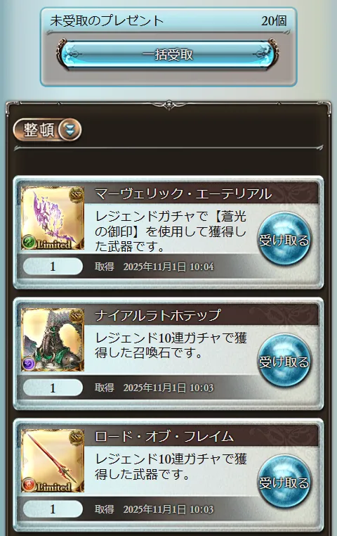 というわけで、レジェンドフェス(2025年10月末版)の天井結果でございました。