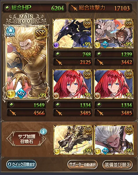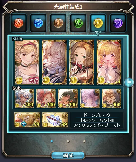 (一応この編成で、光の破壊武器4凸までは仕上げることができました)