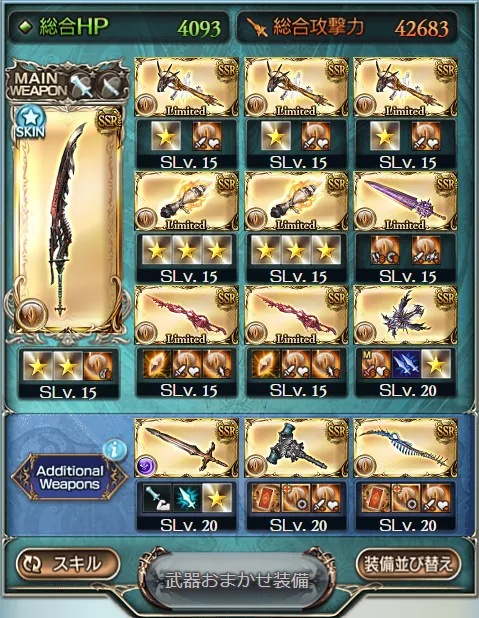 - 季節限定キャラ、リミ武器を総動員して組み上げています