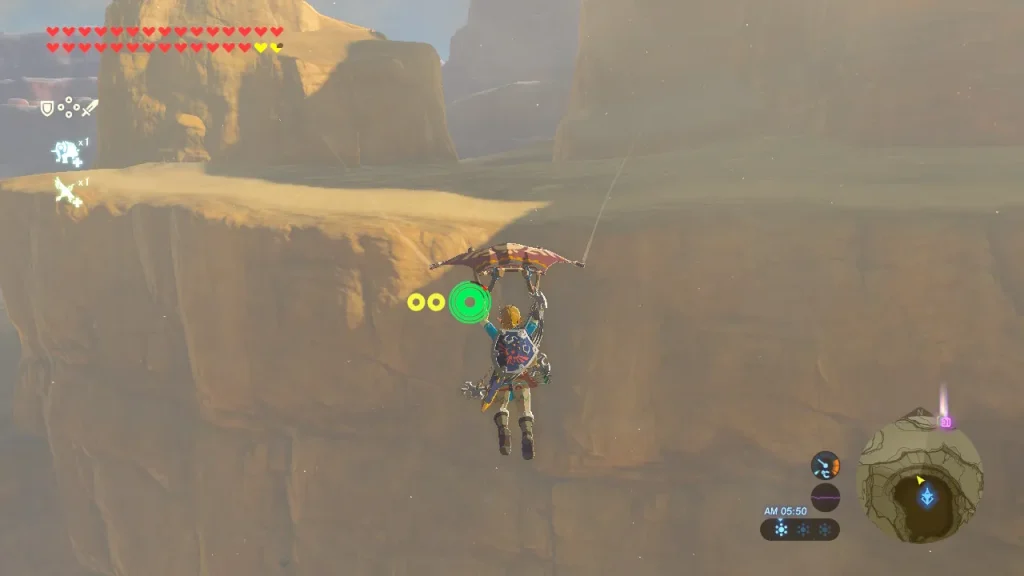 - 荒野の塔からパラセールを使い、対岸の崖(北側)へ飛ぶ。