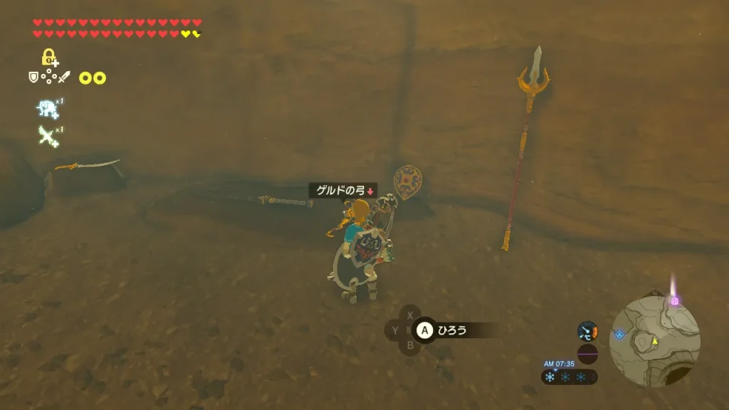 これを使ってハイラル城内を探索しつつ、落ちている武具を拾いましょう。