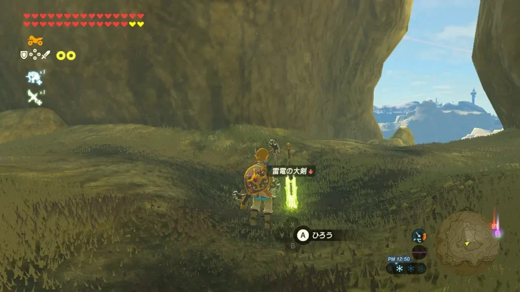雷電の大剣は、ハイラル城の牢屋奥のスタルヒノックスからも拾えます。