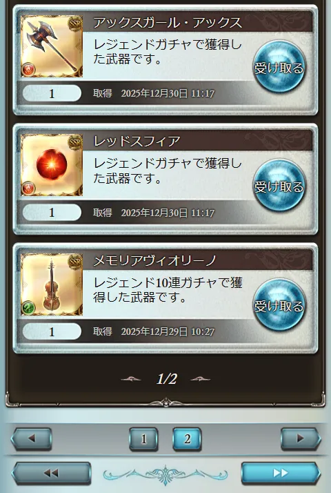 というわけで今回は初の撤退報告も兼ねて、年末版グランデフェスを引いた結果を話していきます。