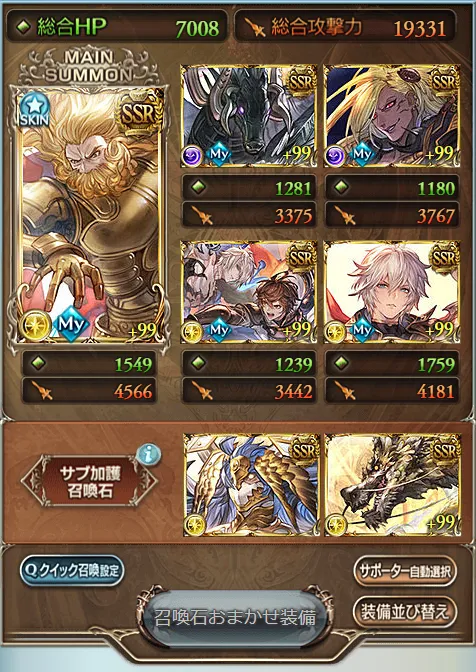 召喚石【メイン】ゼウス250 【サポート】ゼウス250