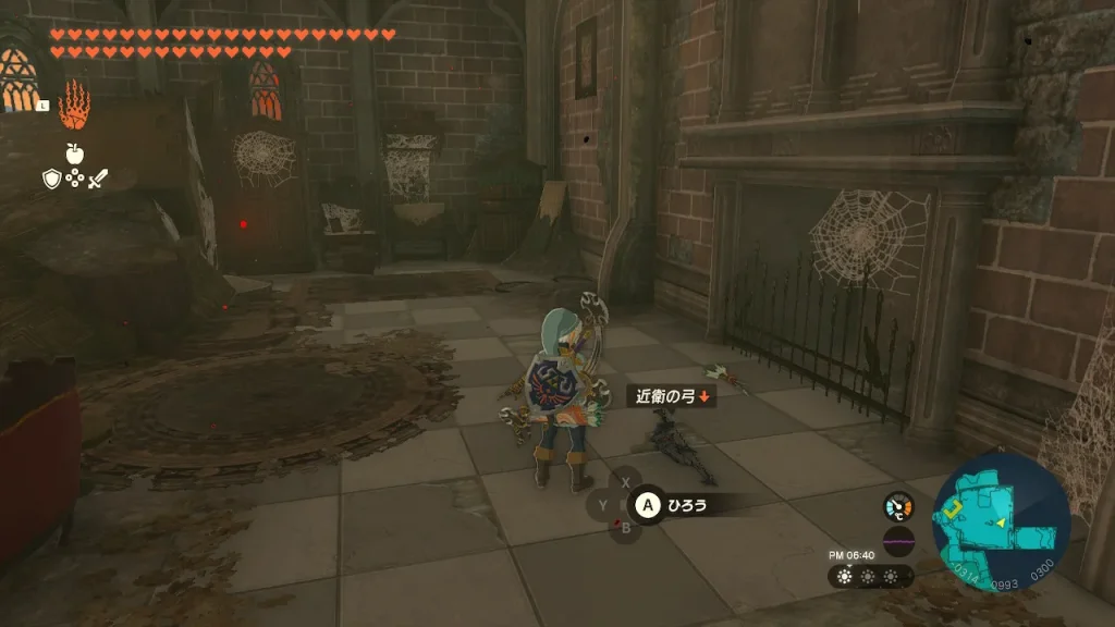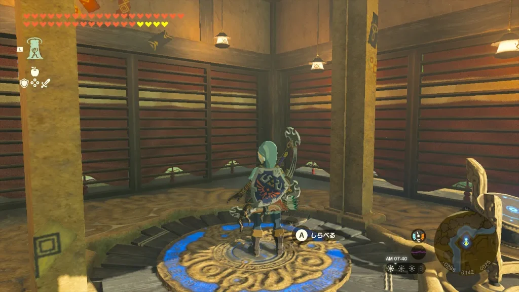 ブレワイの時と同じ場所に、近衛の弓が立てかけられています。