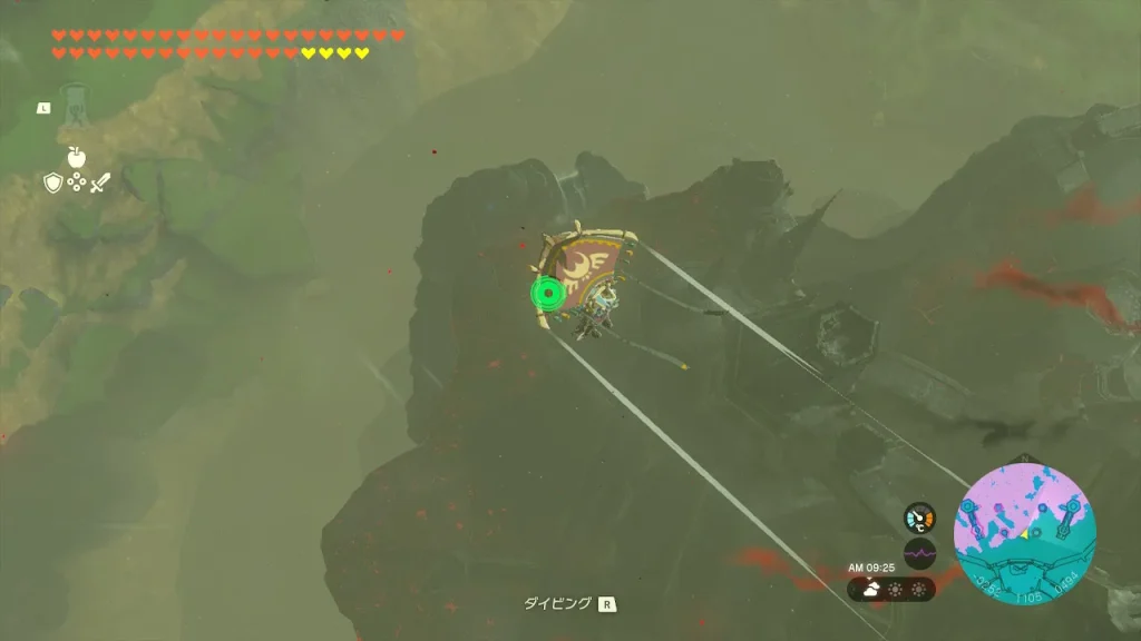 祠の裏手からパラセールで飛べば、図書室へ繋がる穴が見えてきます。