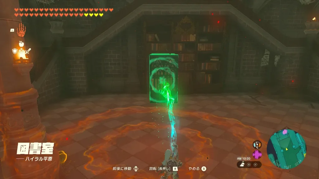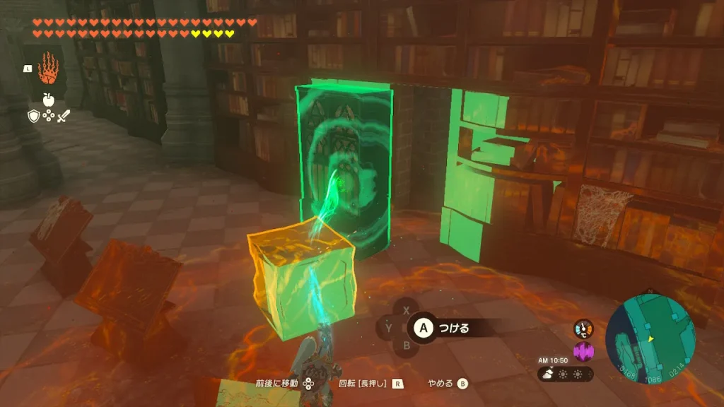 ブレワイの時と同じく本棚で塞がっているため、ウルトラハンドでどかしましょう。