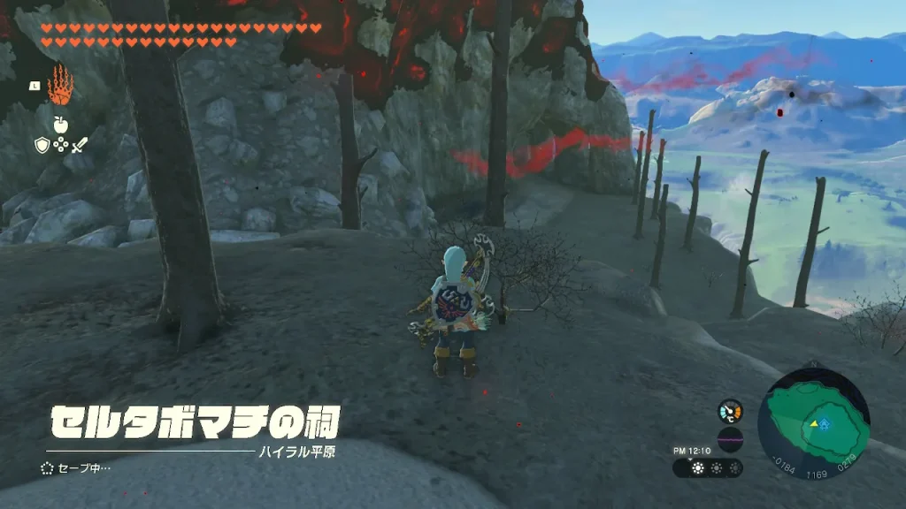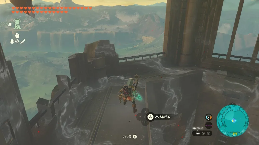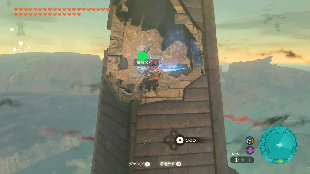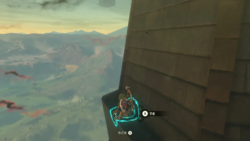 黄昏の弓の場所を背にして見下ろすと、ゼルダの研究室が見えます。