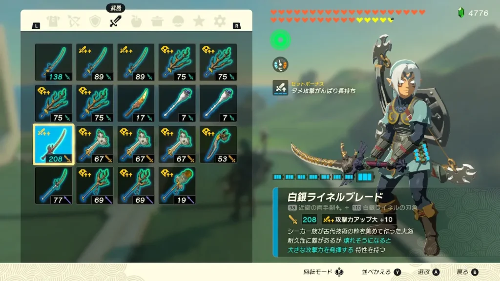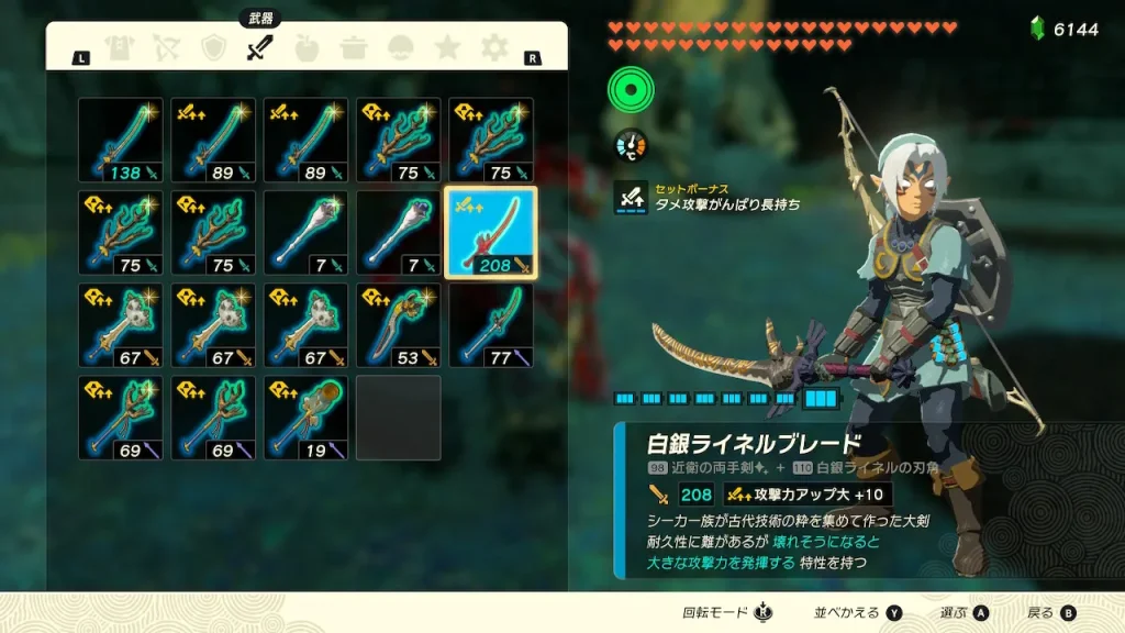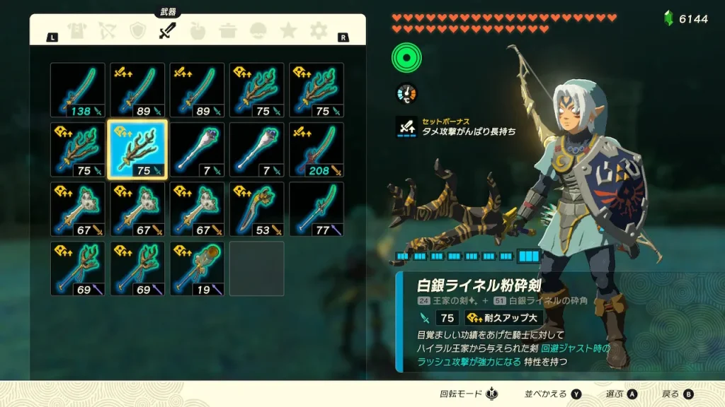 (今回は白銀ライネル粉砕剣を使います)
