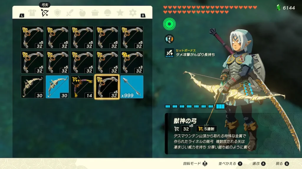 ライネル系の弓(特に獣神の弓)は、5連射などの追加効果が付与されてこそ!