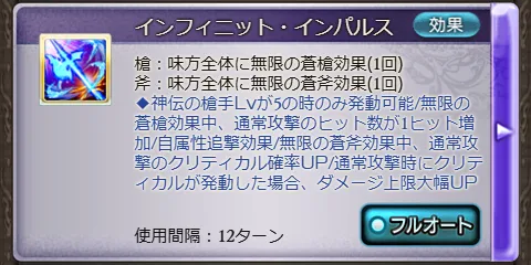 神伝の槍手Lv5でしか発動できず、初手で発動してこそ真価を発揮します。