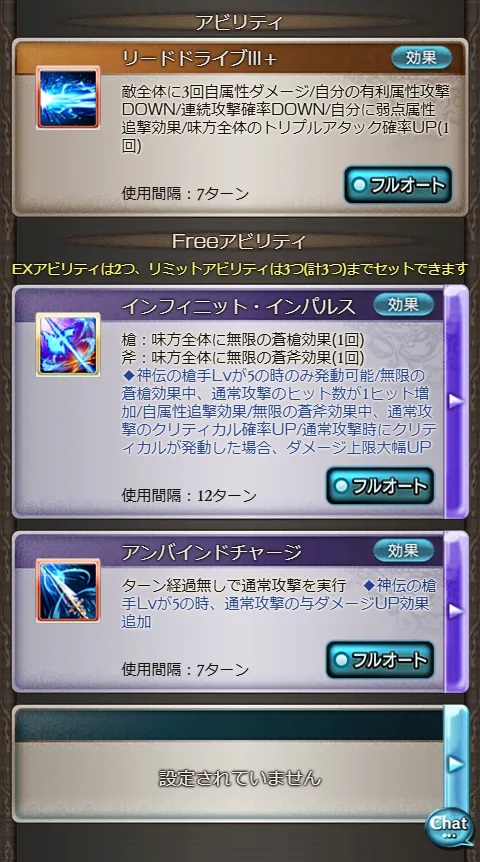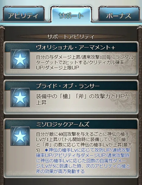 • 次に発動するアビの『槍』と『斧』の効果が両方発動する