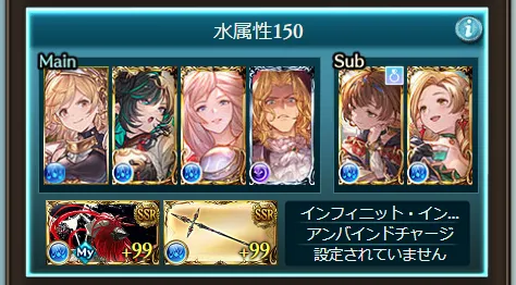 なぜ水属性かというと、この記事を書いた時が水古戦場の手前だったからですw