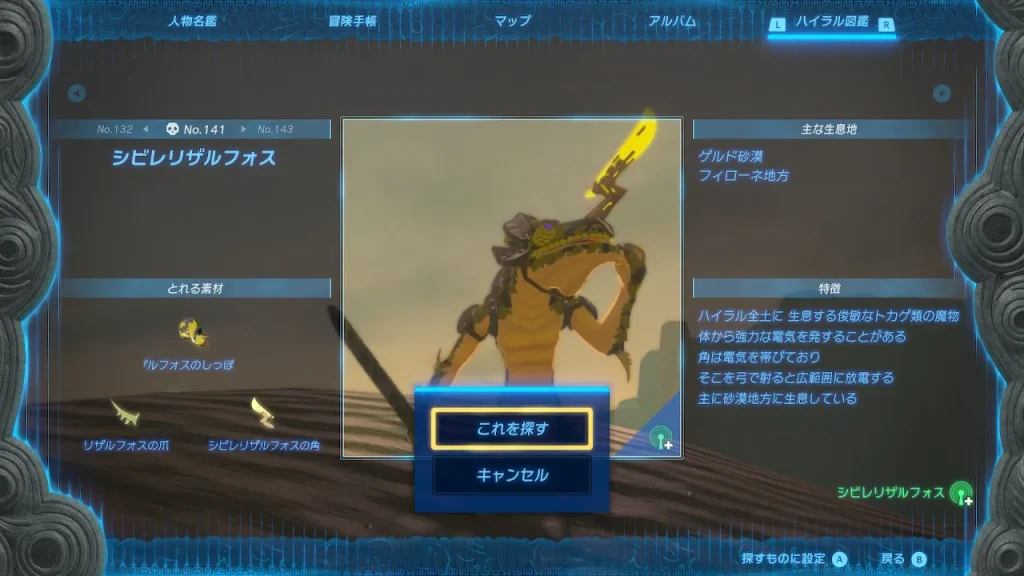 ティアキンのリザルフォスのしっぽは、全体的に集めにくいですよねーw
